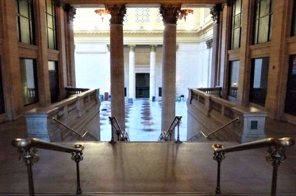 ネスがカポネの手下の殺し屋ニッティを追跡するシーンの撮影に使われた「シカゴ文化センター」です。